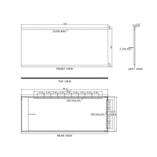 Paris Mirror Paris 100" x 45" Dual-Lighted Super Bright Dimmable Wall-Mounted 3000K LED Mirror With 2 Acrylic Frosted Edges