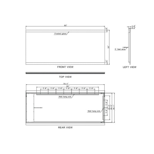 Paris Mirror Paris 80" x 35" Dual-Lighted Super Bright Dimmable Wall-Mounted 3000K LED Mirror With 2 Acrylic Frosted Edges
