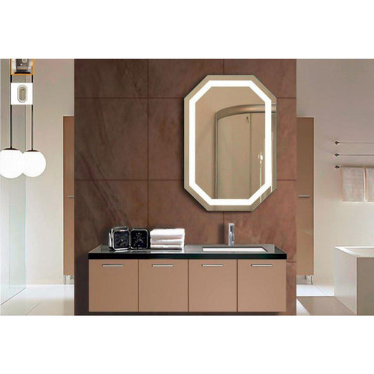 Krugg Reflections Tudor 42" x 24" 5000K Octagon Wall-Mounted Illuminated Silver Backed LED Mirror With Built-in Defogger and Touch Sensor On/Off Built-in Dimmer