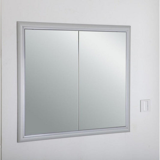 Lighted Impressions Royale 32" x 28" Rectangular Framed Wall-Mounted LED Mirror Cabinet With 3-Section Rocker Switch & Glass Shelves