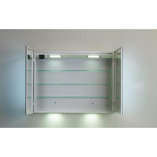Lighted Impressions Kona 36" x 28" Rectangular Framed Wall-Mounted LED Mirror Cabinet With 3-Section Rocker Switch & Glass Shelves