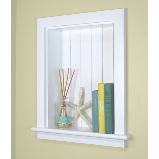Fox Hollow Furnishings Aiden 14" x 24" White Recessed Wall Niche With Beadboard Back and One Shelf