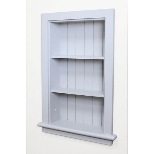 Fox Hollow Furnishings Aiden 14" x 24" Light Gray Recessed Wall Niche With Beadboard Back
