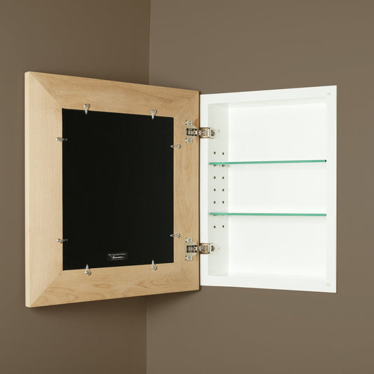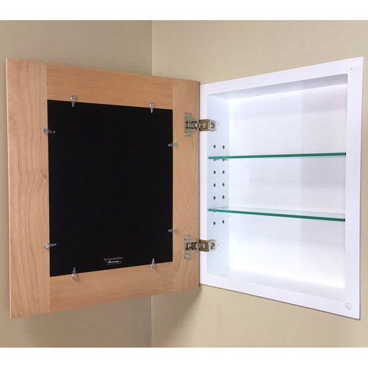 Fox Hollow Furnishings 14" x 18" Large Unfinished Shaker Style Special 3" Depth White Interior Recessed Mirrored Medicine Cabinet