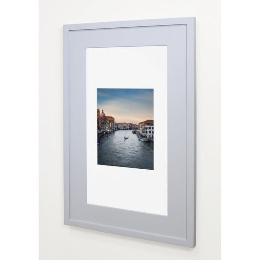 Fox Hollow Furnishings 14" x 24" Light Gray Extra Large Special 3" Depth White Interior Recessed Picture Frame Medicine Cabinet With White 8" x 10" Matting