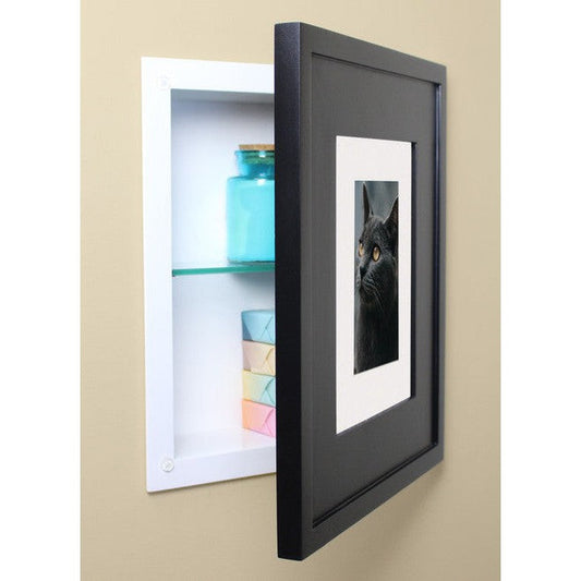 Fox Hollow Furnishings 11" x 14" Black Compact Portrait Special 3" Depth Recessed Picture Frame Medicine Cabinet With White Matting