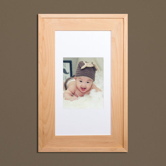 Fox Hollow Furnishings 14" x 24" Unfinished Extra Large Standard 4" Depth Natural Interior Recessed Picture Frame Medicine Cabinet With White Matting