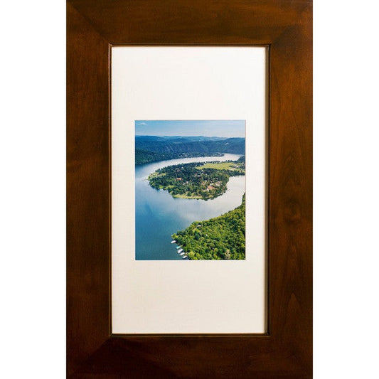 Fox Hollow Furnishings 14" x 18" Caramel Large White Interior Special 6" Depth Recessed Picture Frame Medicine Cabinet With White 8" x 10" Matting