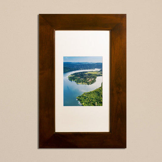 Fox Hollow Furnishings 14" x 24" Extra Large Natural Interior Standard 4" Depth Recessed Picture Frame Medicine Cabinet With Mirror and White 8" x 10" Matting