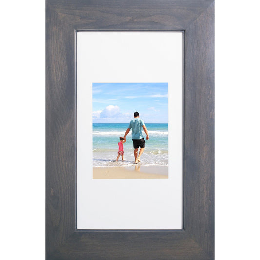 Fox Hollow Furnishings 14" x 24" Gray Extra Large Standard 3.75" Depth Natural Interior Recessed Picture Frame Medicine Cabinet With White Three Opening Matting