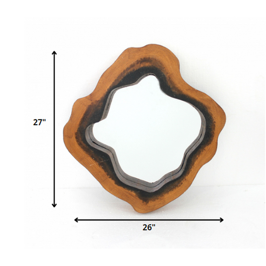 HomeRoots 26" x 27" x 3" Brown Coastal Grotto Like Wooden Frame Mirror