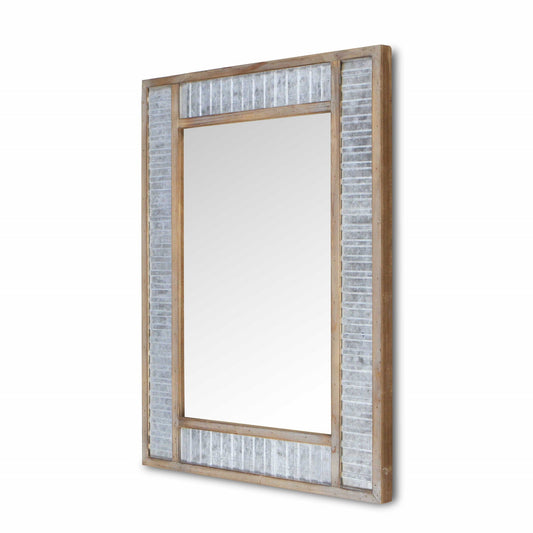 HomeRoots Modern Farmhouse Rectangular Wood and Galvanized Metal Wall Mirror