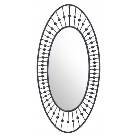 HomeRoots Oval Black Finish Spokes and Beads Wall Mirror