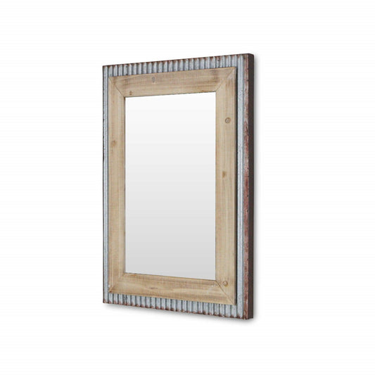 HomeRoots Glavanized Metal and Wood Rectangular Frame Wall Mirror