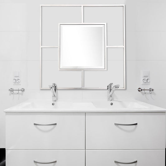 HomeRoots Graphite Geometric Design Square Metal Wall Mirror