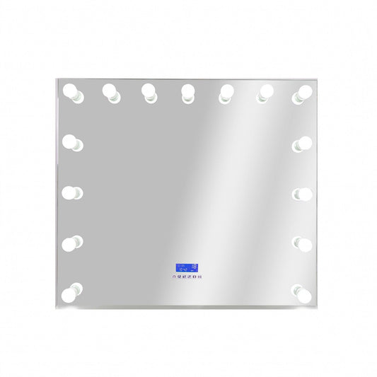 HomeRoots Hollywood USB Touchscreen Light Up Mirror in Silver Stand
