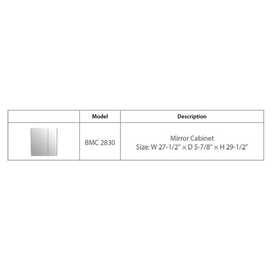 BNK BMC2830WMG Mirror Cabinet White Mable Grain