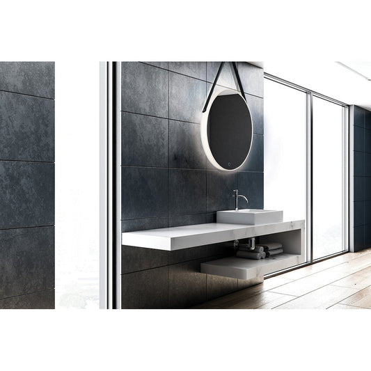 Eurofase Lighting Salerno 24" Edge-Lit Integrated LED Round Mirror With Leather Strap