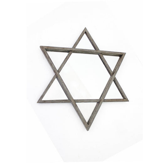 HomeRoots Rustic Hexagram Wooden Cosmetic Mirror In Silver