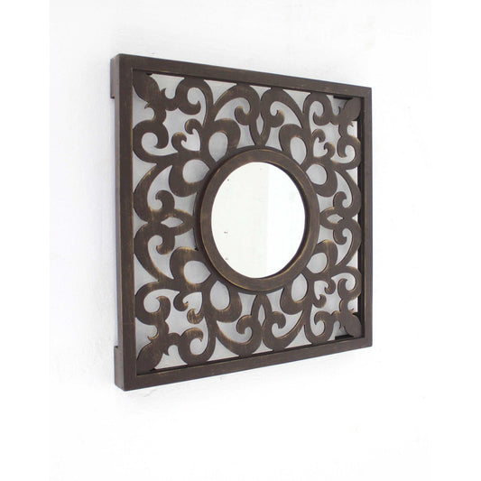 HomeRoots Vintage Wall Mirror In Brown Finish