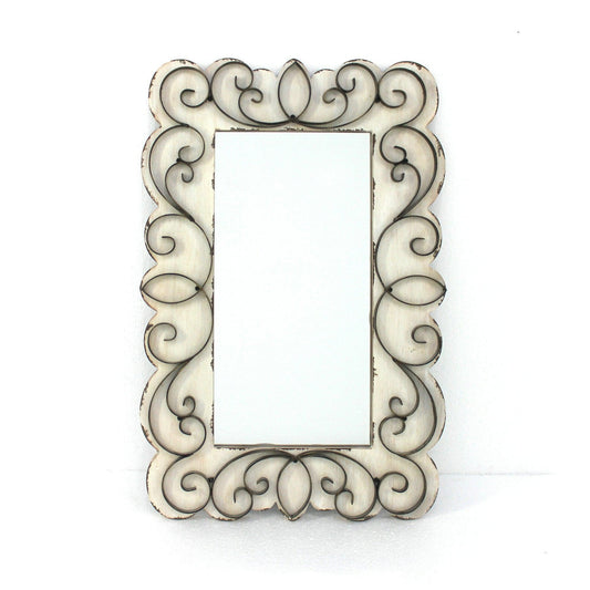 HomeRoots Vintage Decorative Wood & Metal Wall Mirror In Antique White Finish