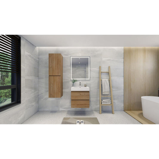 Moreno Bath Bohemia Lina 16" Nature Oak Wall-Mounted Linen Storage Cabinet