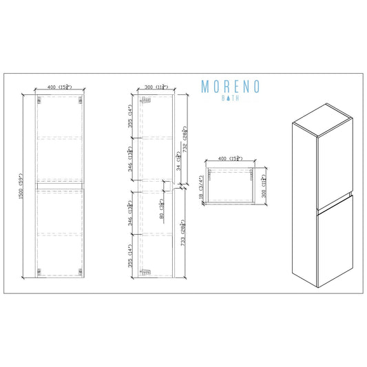 Moreno Bath ELSA 16" High Gloss White Wall-Mounted Bathroom Linen Side Cabinet
