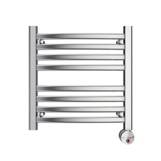 MrSteam Broadway Collection 20" x 20" 8-Bar Polished Chrome Hardwired Wall-Mounted Electric Towel Warmer With Digital Timer and Built-in Aromatherapy Oil Well