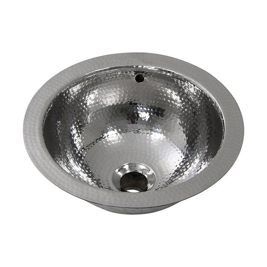 Nantucket Sinks Brightwork Home 13" Round Hand Hammered Polished Stainless Steel Undermount Sink With Overflow