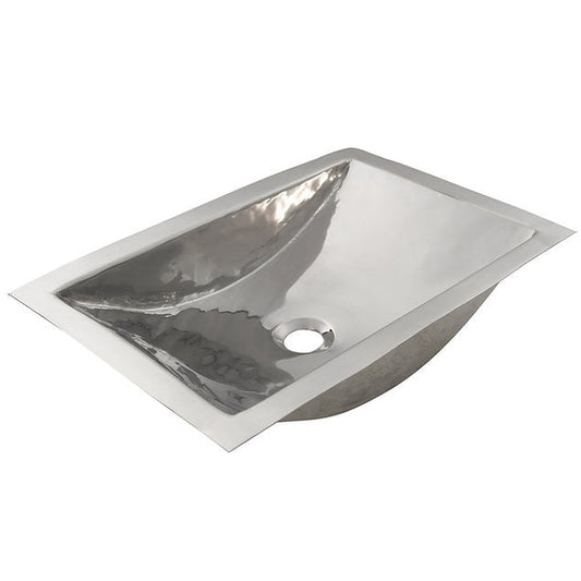 Nantucket Sinks Brightwork Home 21" W x 14" D" Rectangular Hand Hammered Polished Stainless Steel Undermount Sink With Overflow