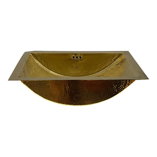 Nantucket Sinks Brightwork Home 21" W x 15" D" Rectangular Hand Hammered Polished Brass Undermount Sink With Overflow