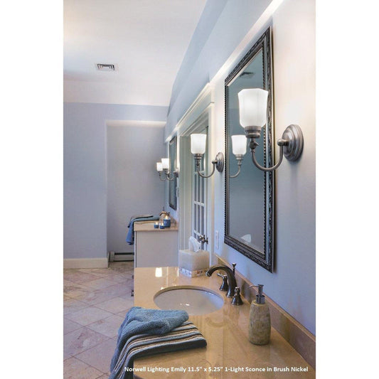 Norwell Lighting Richmond 11" x 4" 1-Light Brushed Nickel Vanity Wall Sconce With Matte Opal Glass Diffuser
