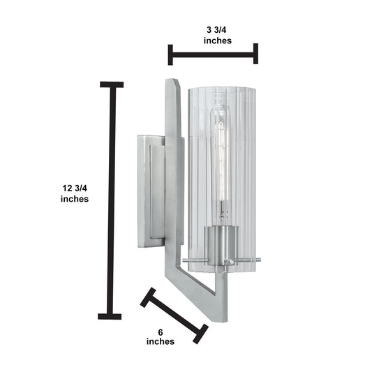 Norwell Lighting Faceted 13" x 4" 1-Light Brushed Nickel Vanity Wall Sconce With Clear Glass Diffuser