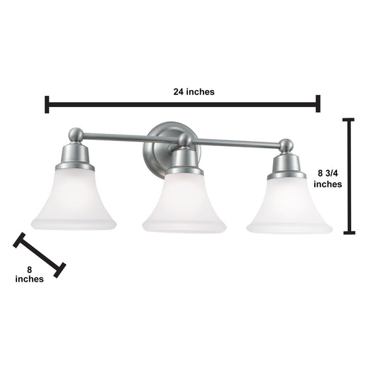 Norwell Lighting Elizabeth 10" x 24" 3-Light Polished Nickel Vanity Sconce With Flared Glass Diffuser