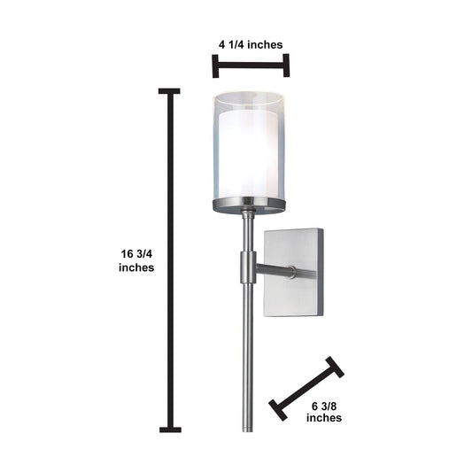 Norwell Lighting Kimberly Sconce 17" x 5" 1-Light Polished Nickel Vanity Wall Sconce With Clear Outer Glass/White Inner Glass Diffuser