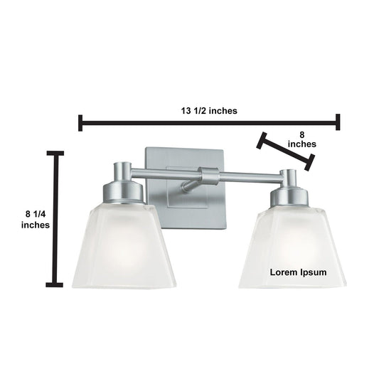 Norwell Lighting Matthew 8" x 14" 2-Light Brushed Nickel Vanity Wall Sconce With Square Glass Diffuser