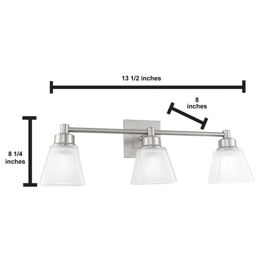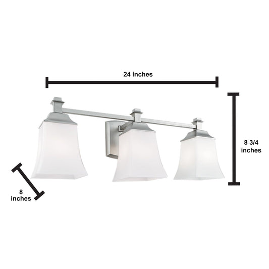 Norwell Lighting Matthew 8" x 22" 3-Light Brushed Nickel Vanity Wall Sconce With Square Glass Diffuser
