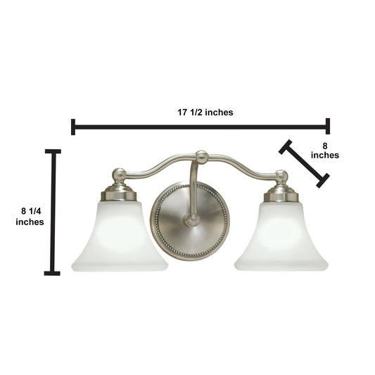 Norwell Lighting Soleil 8" x 18" 2-Light Sconce Brushed Nickel Vanity Light With Flared Glass Diffuser