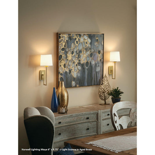 Norwell Lighting Maya 6" x 4" 1-Light Sconce Polished Nickel Indoor Wall Light With Fabric Diffuser