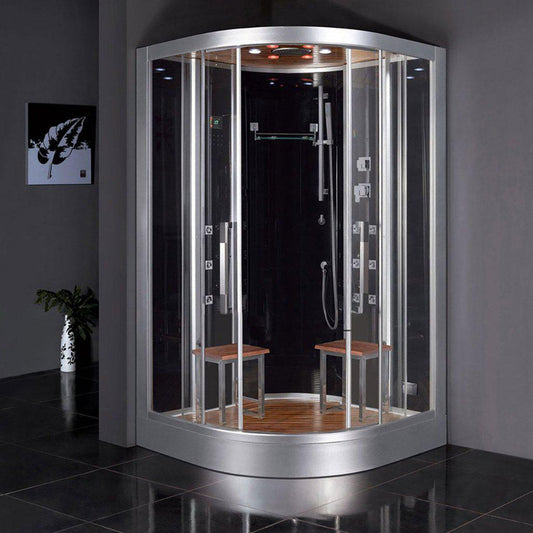 Platinum 59" x 59" x 89" Two-Person Black Framed Round Corner Steam Shower With Dual Sliding Doors Jetted Tub & LED Chromatherapy Lighting
