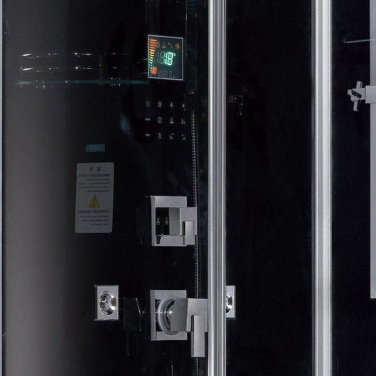 Platinum 47" x 35" x 89" Two-Person Black Framed Rectangle Walk-In Steam Shower With Left Handed Control Panel Configuration Hinged Door 6 Massage Jets & LED Chromatherapy Lighting