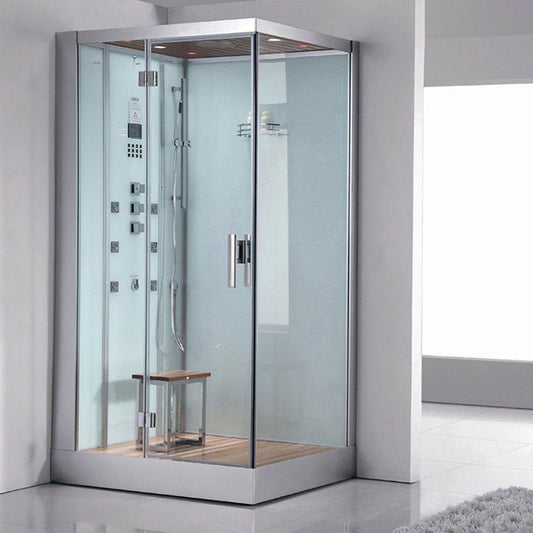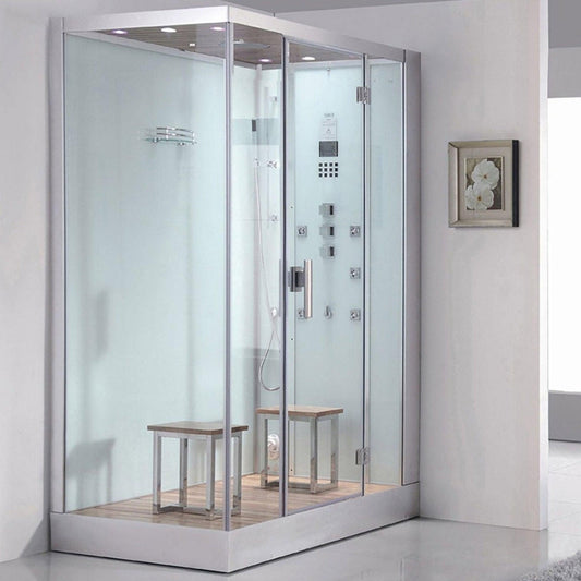Platinum 59" x 32" x 87" Two-Person White Framed Rectangle Walk-In Steam Shower With Hinged Door 20 Massage Jets & LED Chromatherapy Lighting