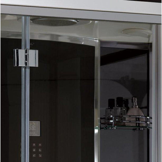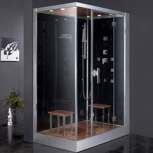 Platinum 59" x 32" x 87" Two-Person Black Framed Rectangle Walk-In Steam Shower With Hinged Door, 20 Massage Jets & LED Chromatherapy Lighting