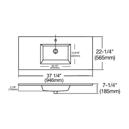 Ratel 37" x 22" White Ceramic Single Integrated Sink and Vanity Top