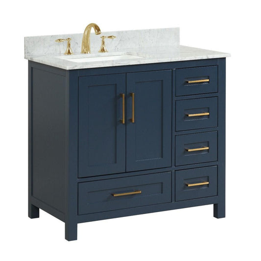 Ratel Valencia 36" 2-Door and 5-Drawer Aria Blue Vanity Set