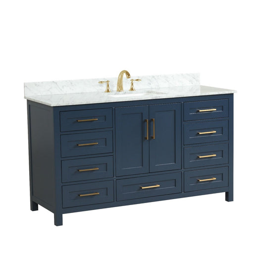 Ratel Valencia 60" 2-Door and 9-Drawer Aria Blue Vanity Set