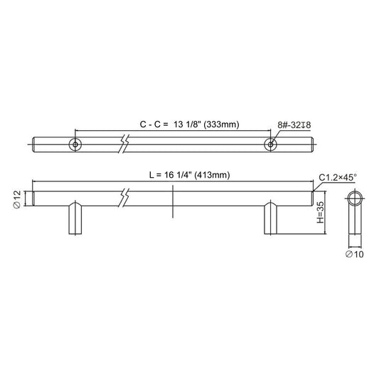 Ratel 16" Brushed Nickel Steel T-Bar Handle
