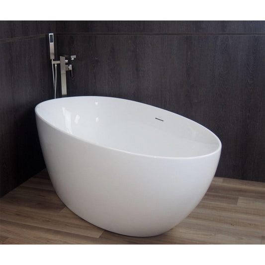 Ratel 59" x 31" Oval White Gloss Acrylic Freestanding Bathtub