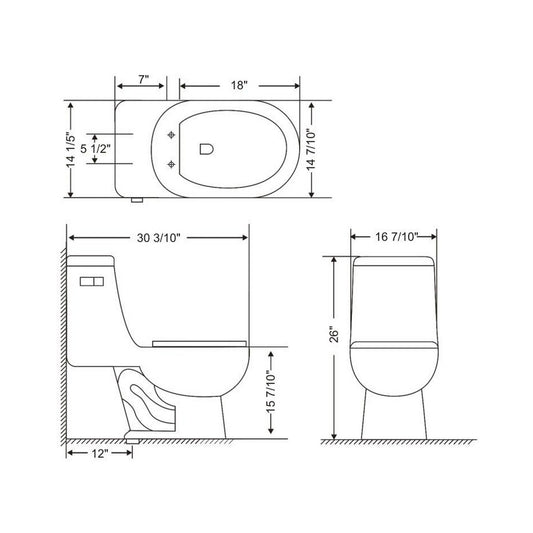 Ratel 14" x 28" White Gloss One-Piece Dual-Flush Floor-Mounted Toilet With Soft-Close Seat