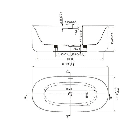 Ratel 67" x 32" Elliptical White Gloss Acrylic Freestanding Bathtub